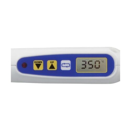 デジタル制御の温調はんだこてです。グリップ部は耐熱性の高い6ナイロンを使用しています。はんだ付け対象にあわせて設定温度を200℃から500℃まで1℃単位で調整が可能です。振動センサーによるスリープ、シ |
