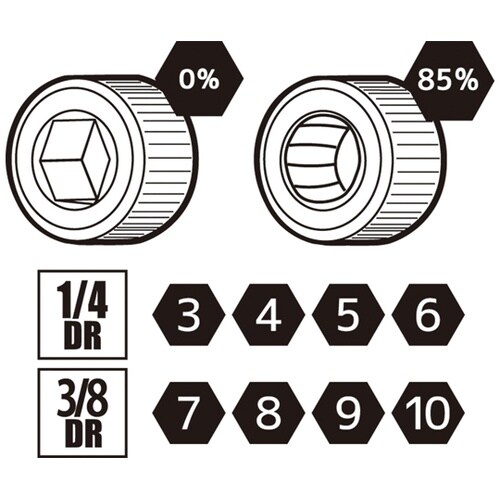 ヘックスボトルリムーバーソケットセット 1/4・3/8DR 各4個入 黒 21898