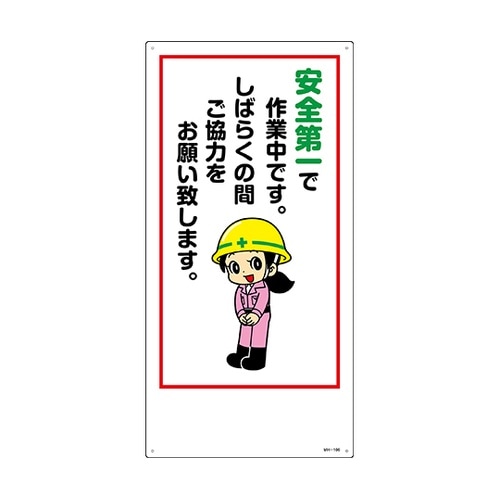 日本緑十字社 イラスト標識 安全第一で作業中です。しばらくの間ご協力をお願い致します。 MH−106 600×300mm エンビ 097106 A04F-4941