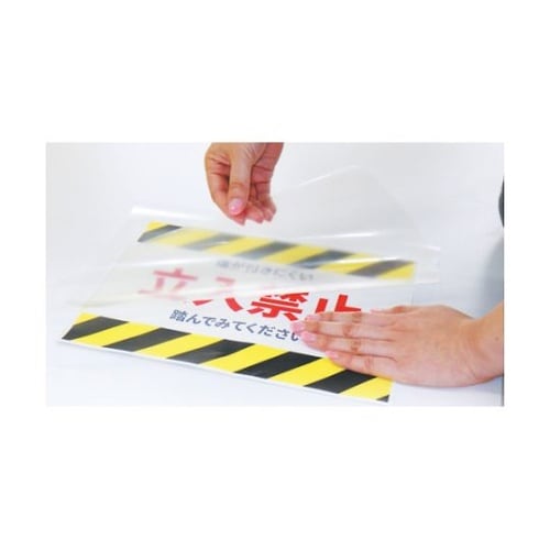 印刷物で簡単にフロアステッカーが作れます。汚れに強く、油性マジックなどの頑固な汚れもふき取るだけで楽に落ちます。抗菌加工済みで、擦れても粉塵が出にくいので、病院や食品工場などでも安心です。不燃材認定合 |