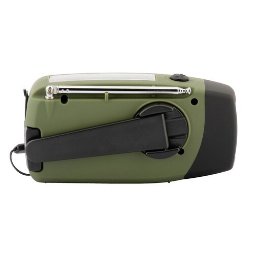 キャンプなどへの携帯や、停電時など災害時・緊急時に備えておける多機能ラジオ。電池不要でLEDライトが使えます。ハンドルを手回しすることで発電して充電ができます。ソーラーパネルで太陽光でも充電も可能です |