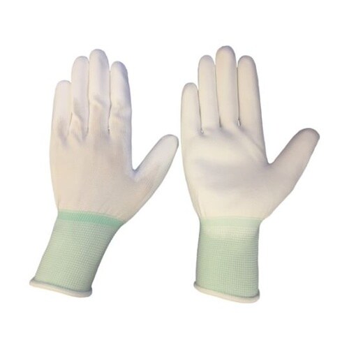 手のひらにポリウレタンをコーティングした低発じんの手袋です。手のひらコーティングでグリップ性を向上しています。クリーンルーム、ちり・ホコリ対策の必要な作業に。