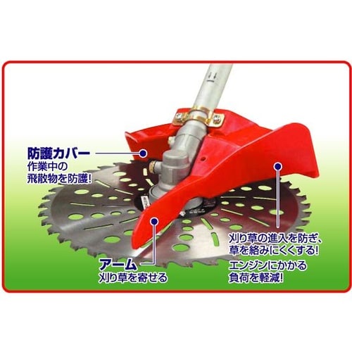 ほとんどのエンジン式刈払機に取り付け可能草刈り作業時に負担をかけない軽量・安全設計刈りながら草を寄せる「集草アーム」と「防護カバー」が一体化した画期的カバー草刈り後の集草作業の苦労から解放草を刈りなが |