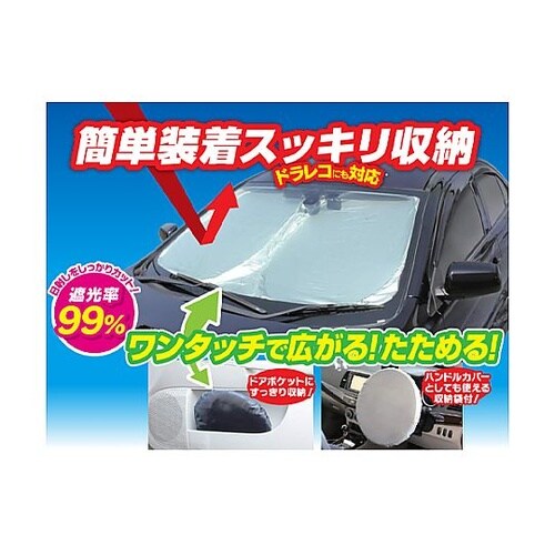 フロントガラス用簡単装着でき、スッキリ収納できますドラレコにも対応 ※ドラレコの形状により、取り付けが出来ない場合があります。日射しをしっかりカット!遮光率99%ワンタッチで広がる、たためる!ドアポケ |