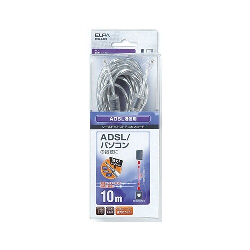 1インチのハイピッチツイストと新開発のスパイラルシールドにより、より確かなノイズシールド効果を実現室内のテレホンコンセント、またはスプリッタからADSLモデムへ接続するときに使用。通常のテレホンコード |
