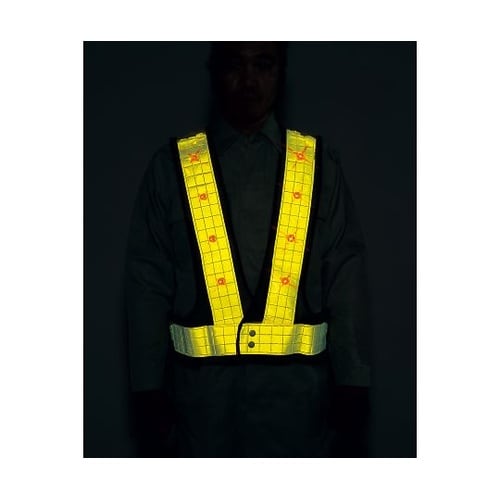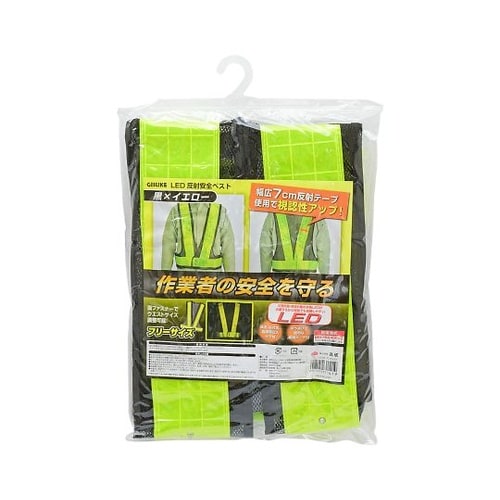 正面8個・背面8個の赤色LEDが点滅するから夜間でも認識しやすい幅広7cm反射テープ使用で視認性アップ!面ファスナーでウエストサイズ調整可能!フリーサイズ氏名、会社名、血液型記入タグ付き持ち運びに便利 |