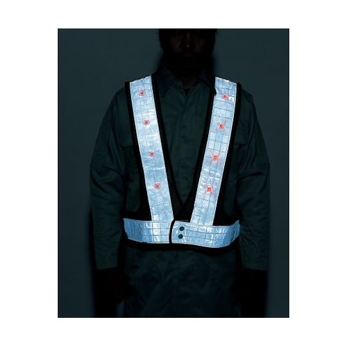 正面8個・背面8個の赤色LEDが点滅するから夜間でも認識しやすい幅広7cm反射テープ使用で視認性アップ!面ファスナーでウエストサイズ調整可能!フリーサイズ氏名、会社名、血液型記入タグ付き持ち運びに便利 |