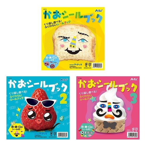 人気のかおシールブック3冊セット繰り返し使える!貼ってはがせるふくわらいシールブック!目・鼻・口のシール付!注意:対象年齢3歳以上 |