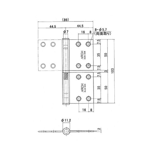 掘込み加工不要の左右勝手兼用タイプ・抜き差しタイプの旗丁番です。下取付用の2枚セットになっています。 |