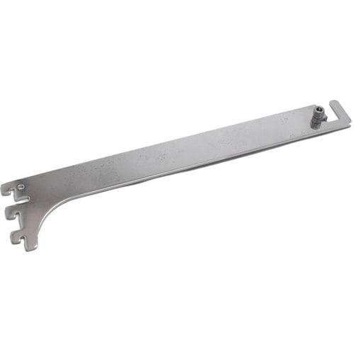 店舗陳列用のシンプルなディスプレイ衣料掛けパーツです。店舗陳列用パーツ。角バー取付用の振れ止め付きブラケットです。 |