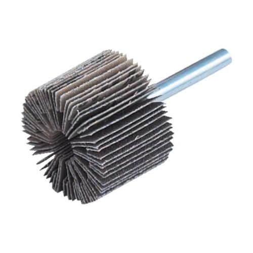 一般金属用です。研磨布が基盤を覆う形に植え込んでいるため、底面、側面の2面を同時に研磨することができます。軸付フラップホイールの持つ特性を保ちつつ、研削作業の効率化と汎用性を向上させた製品です。目づま |