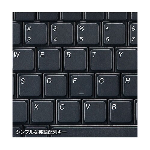 余分なキーを省いたシンプルな英語配列キーボードです。ノートパソコンと同じパンタグラフキーボードです。テンキーなしで、幅わずか293mmです。サイズを極限まで小さくした超コンパクトデザインです。キーボー |