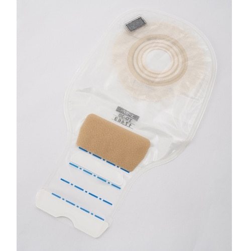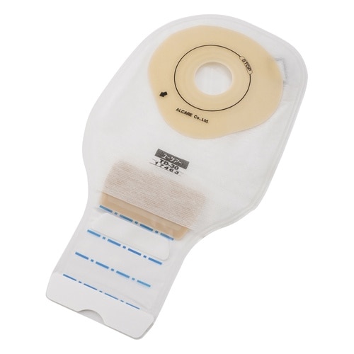 消化管ストーマ用。全体が平らな面板で、高さのあるストーマに適しています。下部に便排出口があるストーマ袋です。交換目安は2日。面板には、しなやかで耐久性のある薄型皮膚保護剤を使用しています。においや便の