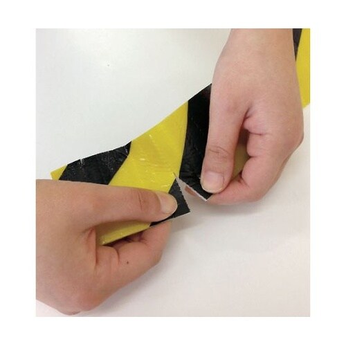 クッション付のトラテープです。テープに切り込みが入っており、手で好きな長さにカットできます。屋内用。危険表示。衝突対策。