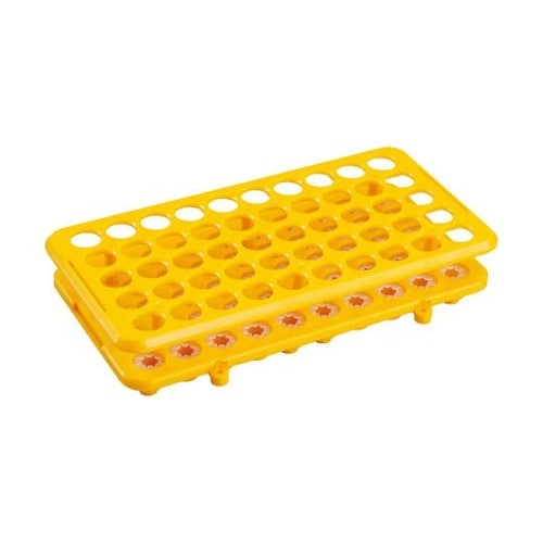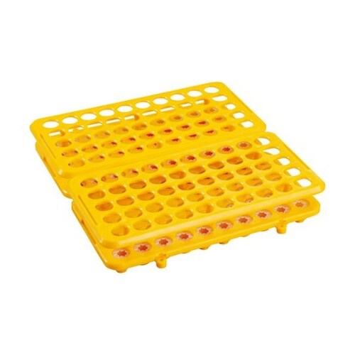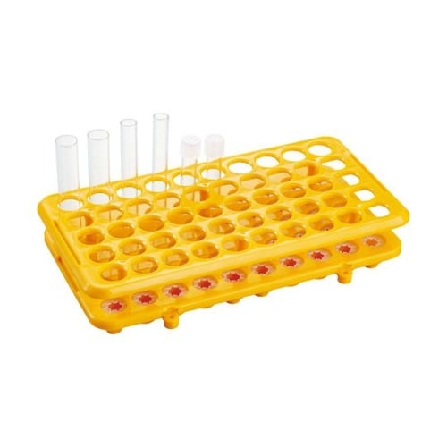 底面側に落下防止のためのシリコンゴム製のストッパーが付いているので、試験管を支えることができます。試験管立て同士を接続することができます。(Φ3mmネジ穴付、ネジは別途) |