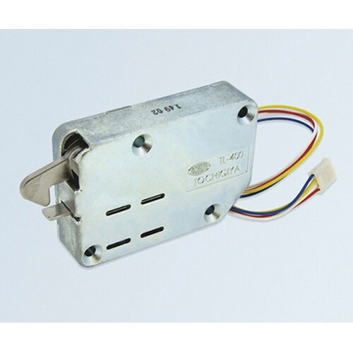 扉を閉めることにより、ラッチがキーパーに掛かって施錠します。この際、キーパーがスイッチプレートを押すことにより、マイクロスイッチがON状態となります(COM(黄)−NO(青))。ソレノイドの通電するこ |