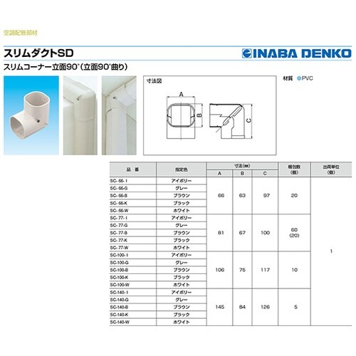 スリムダクトのコーナー立面90°曲り施工用 |