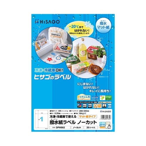 撥水紙 ラベル A4 ノーカット 1袋(20シート入) OPW862