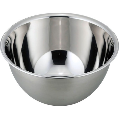 玉子や生クリームのミキシング、和え物に便利な深さのあるステンレスボールです。ボールの淵は綺麗に丸く巻き込んであり、手触り良く仕上げている。外面はサテン仕上げ、内面はミラー仕上げで見た目も美しい仕上がり