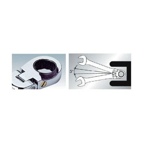 正逆の切り替えは付いていません。美しい硬質クロムメッキ処理をしています。スパナ部分はノンスリップ仕様になっているので、ボルトやナットをしっかりとつかめます。72枚歯のギアを採用しています。ギヤレンチの |