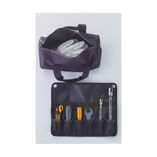 ツールバッグとツールロールが一体化したバッグです。ツールロールは取り外し可能ですのでバッグと別々で使用できます。ツールロールは工具を整理するためのポケットが6個付いています。 |