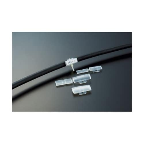 紙に書いたメモなどを入れて、ケーブルタイと併用して物に固定できます。ボックス自身は繰り返し利用可能、また入れ物を変更できます。マーキングしにくい電線などに。 |