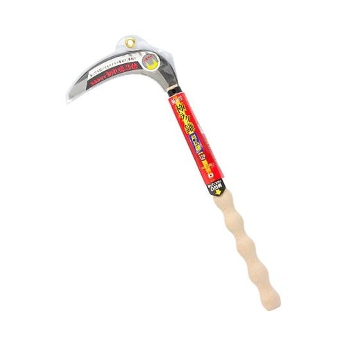 三面刃付裏目式刃:三面に刃を付けた裏目式刃で、刃先を薄くシャープに仕上げているため、通常の刃付けの鎌よりも草をスッと楽に刈ることができます。また、草削りにも使用できます。すっぽ抜け防止ハンドル:自然に |