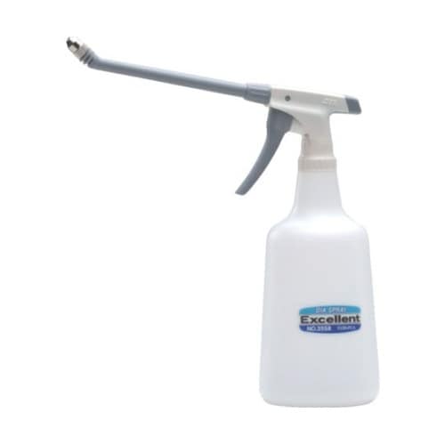 有機溶剤系の液が噴霧できます。ノズルを回すと霧から直射まで対応可能です。有機溶剤・防錆剤・有機溶剤系クリーナー・染み抜き剤などの噴霧に。