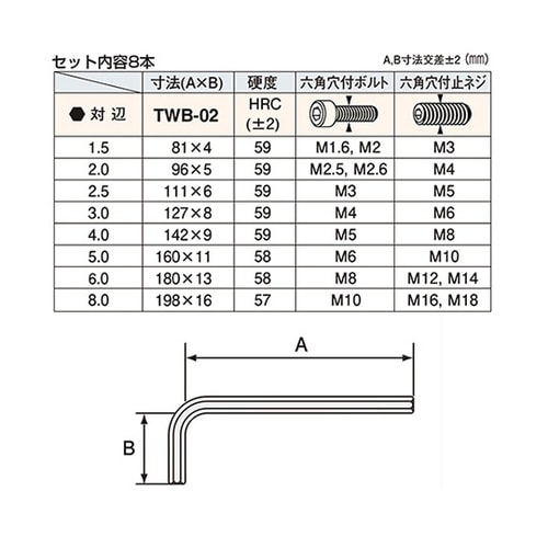 ボールレンチセット ミリサイズ ロングスタビータイプ 1.5−8mm 8本組 TWB−02