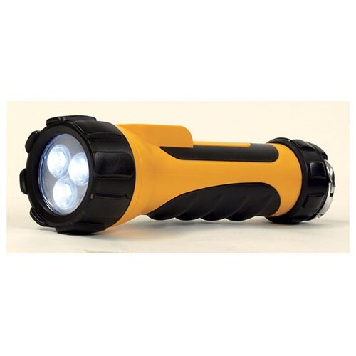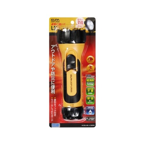 3LED搭載で周囲を明るく照射します。ラバーで衝撃を吸収し、ライトをしっかりガード。雨の中でも使用できる防雨仕様。アウトドアや防災に便利。便利なフック付き。 |