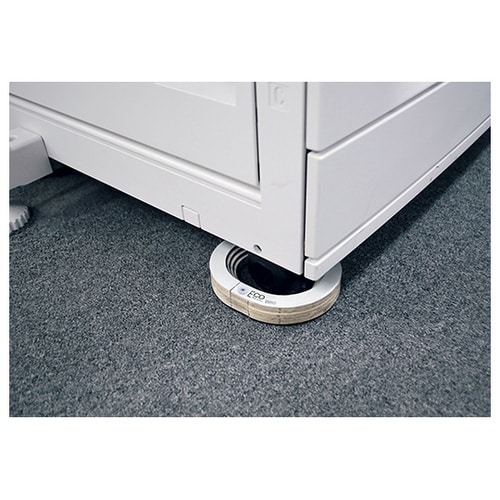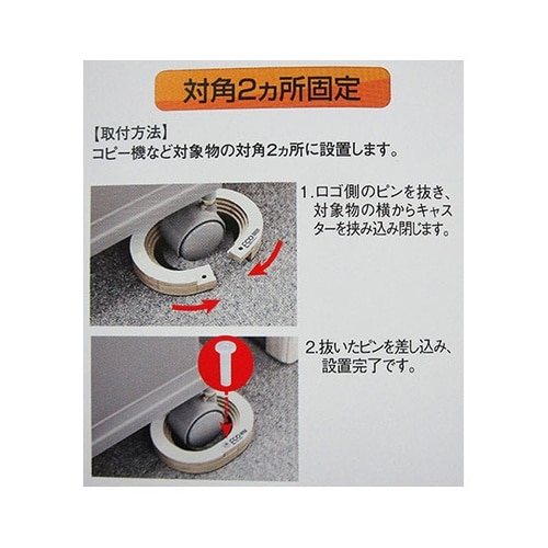 開閉式なので設置がラクラクです。対角2ヶ所に設置でOKです。キャスターを脇から挟み込んでピンで留めます。 |