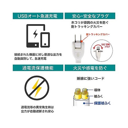 スマートフォンを2台同時充電可能!(USBポート)iPhone、iPad、Androidスマートフォン/タブレットを充電可能です。接続された機器(iPhone、iPad、Android等)に対し、最適 |