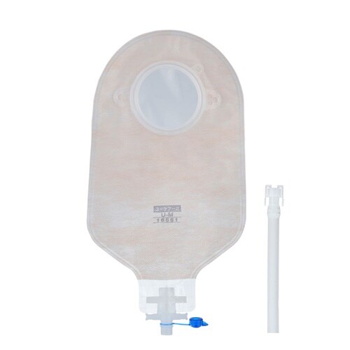 尿路ストーマ用。尿排出口がダブルロックで安心なストーマ袋です。排泄物の逆流を防ぐ逆流防止弁を採用しています。面板の密着性を高めたい場合は「ユーケアー胴ベルト」が使用できます。 |