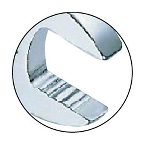 正逆は切り替えピン式です。美しい硬質クロムメッキ処理をしています。スパナ部分は、ノンスリップ仕様になっているので、ボルトやナットをしっかりつかめます。72枚歯のギアを採用しています。 |