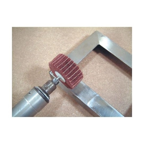 ナイロンとペーパー(A砥粒)のミックスタイプです。絡み合ったナイロン繊維に砥材をまぶし固めたナイロン研磨材を使用しています。ペーパー研磨布の当たりに比べ、ナイロン研磨材は絡み合った繊維がクッションの役 |