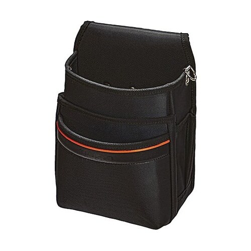 汚れが目立ちにくいブラックを基調としたデザインです。合皮を使用しており、高級感を兼ね備えた腰袋です。開きやすく形状がくずれやすい部分を補強しています。3段のため収納力が大きく、一度に多くの工具を持ち運