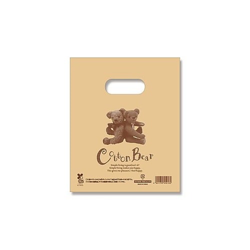 生物由来の有機資源を原料としたバイオマス成分を25%含んだ手抜きポリ袋です。可愛いクマのぬいぐるみの写真風デザイン。バイオマスマーク取得済みで、「プラスチック製買物袋有料化制度」の対象外とすることが可 |
