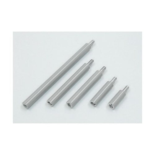 丸ポストに灰色の熱収縮チューブの被複を施してあります。プリント基板・アクリルカバーその他部品支持に便利な金属サポーターです。本体頭部にマイナスドライバーで締付け出来るように溝加工されています。RoHS |