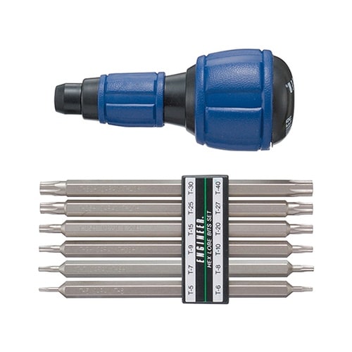 T5−T40までの12サイズのヘックスローブビットをセットしました。ビットは高精度シルバーコーティングを採用しクロムバナジウム鋼です。12サイズのヘックスローブねじに対応します。 |