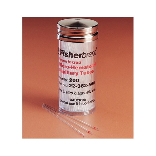 マイクロヘマトクリック用に最適。端はシーラント(粘土)や火炎でシール可能。1本ずつ取り出せるプラスチックバイアル入り。 |