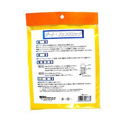 ワイヤー部分に反射機能があり、夜間の安全を確保します。ウレタンコーティングされたワイヤーはゲートやフェンスなどをキズから防ぎます。鍵にはデジタルロックを使用で簡単・スムーズな開閉でご使用いただけます。 |