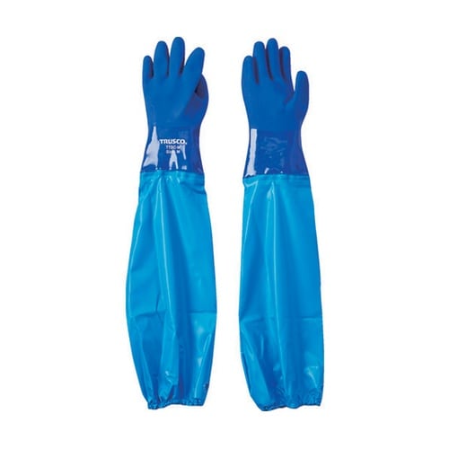 手袋部・腕カバー部ともに塩化ビニールのため、油に強く耐摩耗性に優れています。腕カバー付なので水のかかる作業の際に便利です。漁業、水産業。水を扱う仕事用として。 |