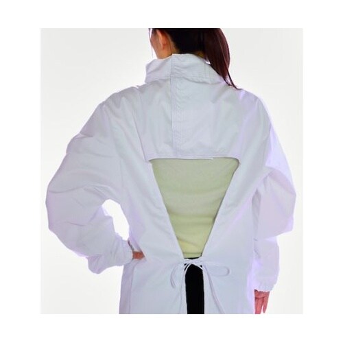 ハイネックタイプなので首周りからの薬品や溶剤の侵入を防ぎます。耐薬品性に優れています。 |