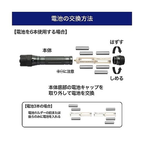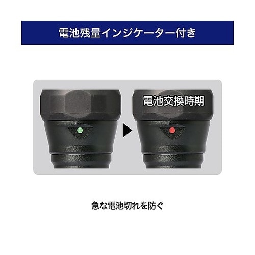 水まわりでも安心の防浸形(IPX7)ラバー搭載で衝撃に強い急な電池切れを防ぐ、電池残量インジケーター電池6本または3本でも使える |