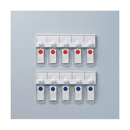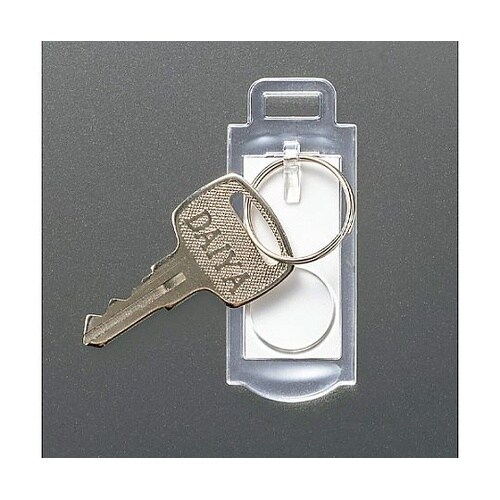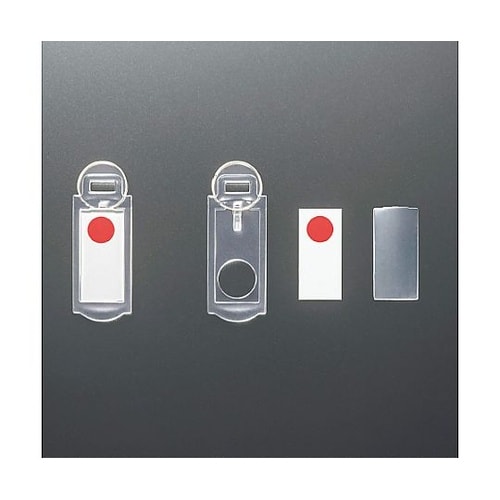 5本用、20個掛用交換用のキーハンガーセットです。中紙を取り出し、タイトルを記入できます。赤丸と青丸どちらもあります。鍵は裏面のリングに取り付けてご使用ください。 |