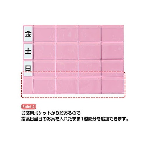 おくすりカレンダー ピンク 4用法8段タイプ ダブルポケット 1枚 KWP2−32−PK