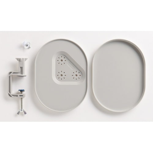 クランプ(ネジ留め式の固定金具)でかんたんに設置できるトレー。小さなパーツやビーズ、よく使う道具類をトレーの上に置いて作業スペースを有効に使えます。散らかりがちな作業机がスッキリ整います。 |
