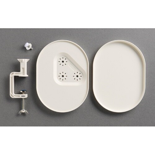 クランプ(ネジ留め式の固定金具)でかんたんに設置できるトレー。小さなパーツやビーズ、よく使う道具類をトレーの上に置いて作業スペースを有効に使えます。散らかりがちな作業机がスッキリ整います。 |