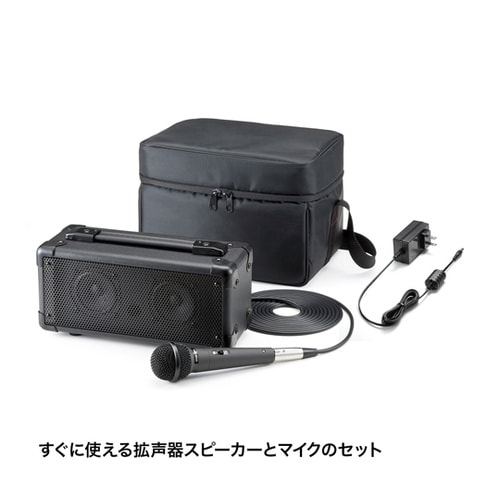 講義や講演、小規模な会議場やイベントなどに手軽に持ち込み、簡単にセッティングができる拡声器スピーカーとマイクのセットです。市販のダイナミックマイクも接続できる標準的なマイク入力端子(直径6.3mm標準 |