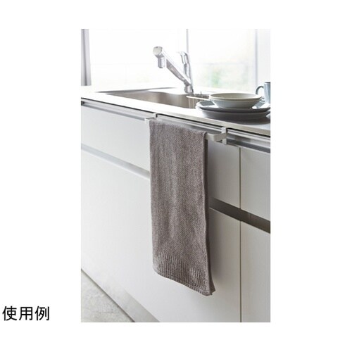 シンク扉に簡単取り付けのタオルハンガー。ワイドタイプはタオルを折り畳まず掛けられます。レールハンドルタイプの扉にも取り付け可能! |